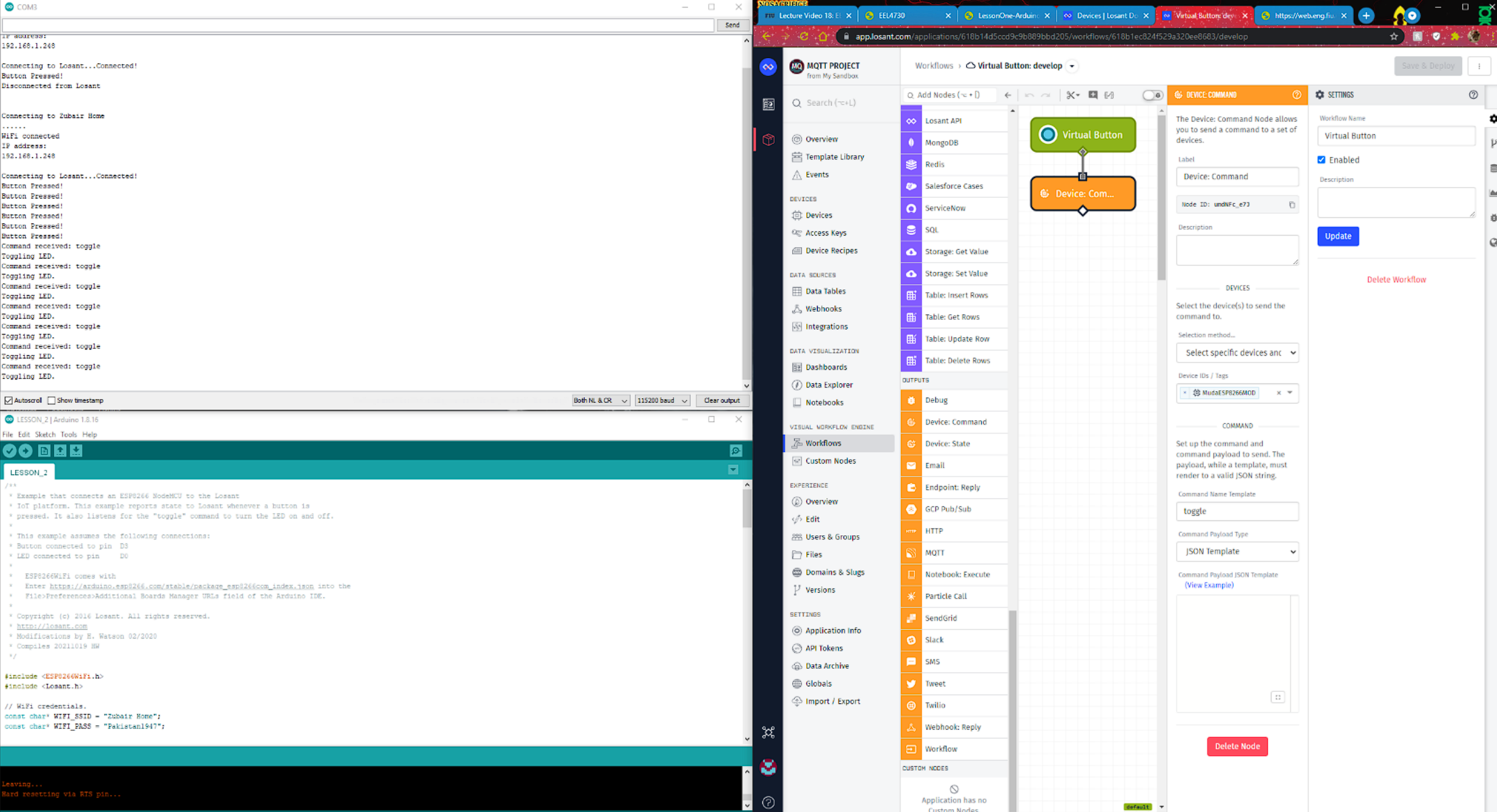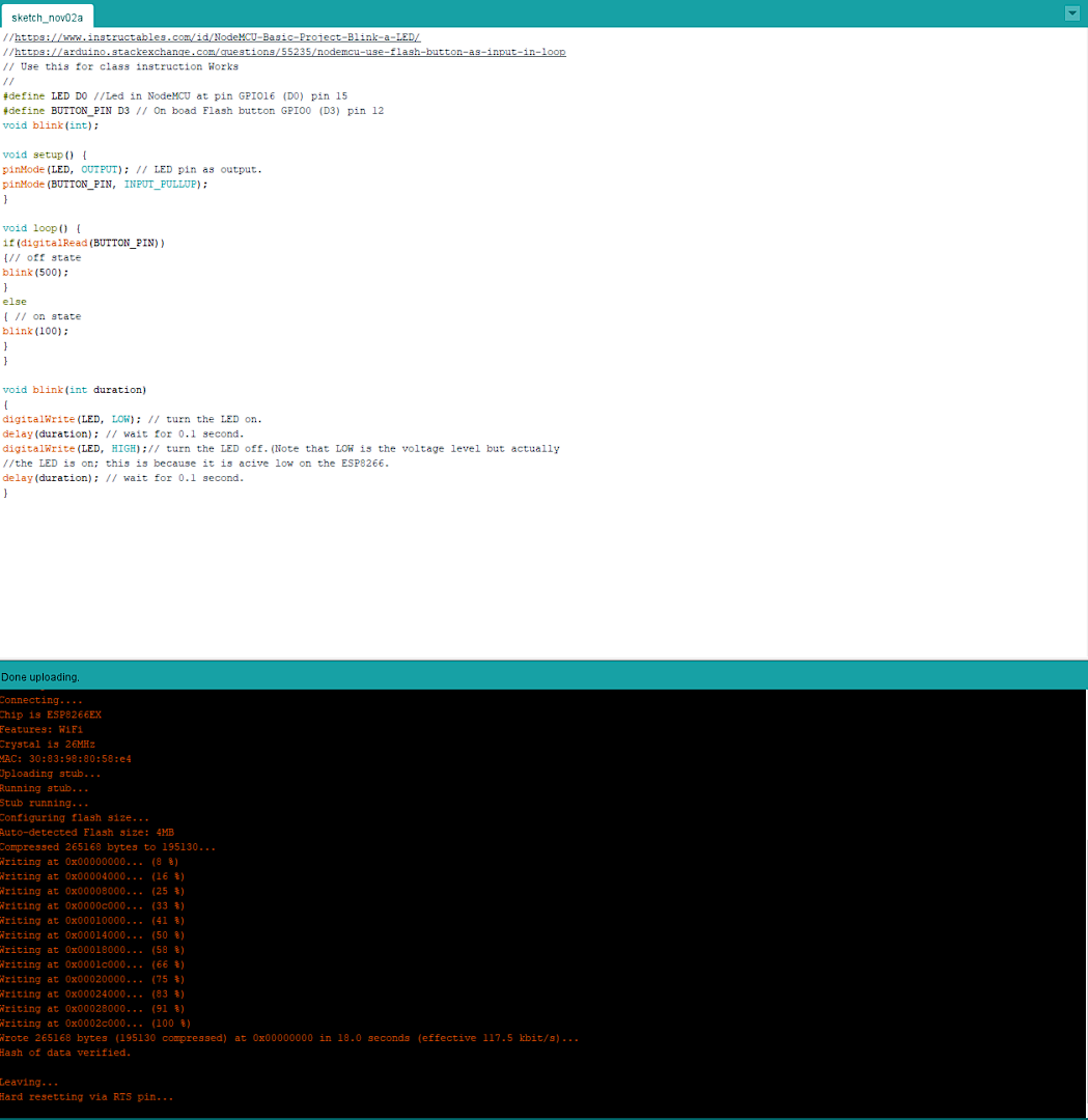 Screen Shot of Serial Monitor and LED: