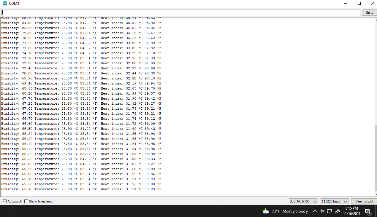 Data on Serial Monitor: