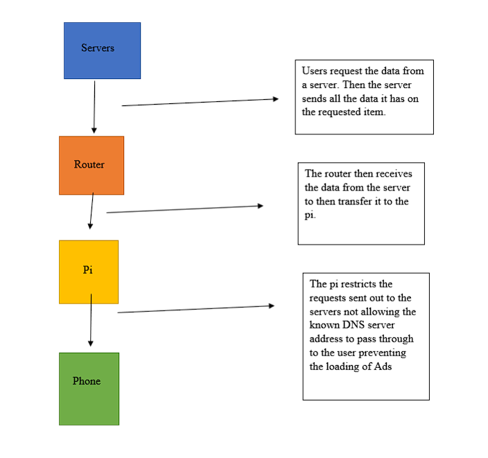 For future modification we would like to get a working GUI that is very easy to use. Along those lines we would like to also make a chromium App that functions and does the same thing but not on a network scale more personal browser. The project was successful in its goal of removing all advertainments in applications that were riddled with them. However, it was not successful in our secondary goal of making removing all or most of the Ads on YouTube. Further testing will be required to create an array to expand the DNS list to reduce the Ads even further. Reason for the code not removing the YouTube ads is because the DNS servers that they use for ads is always changing and change very little but enough to not be in the list of DNS to blacklist thus having an array will filter out those discrepancies. This application was only limited to cellphones during our testing but can be expanded to anything with a DNS setting. Thus, not being limited to only cellular devices